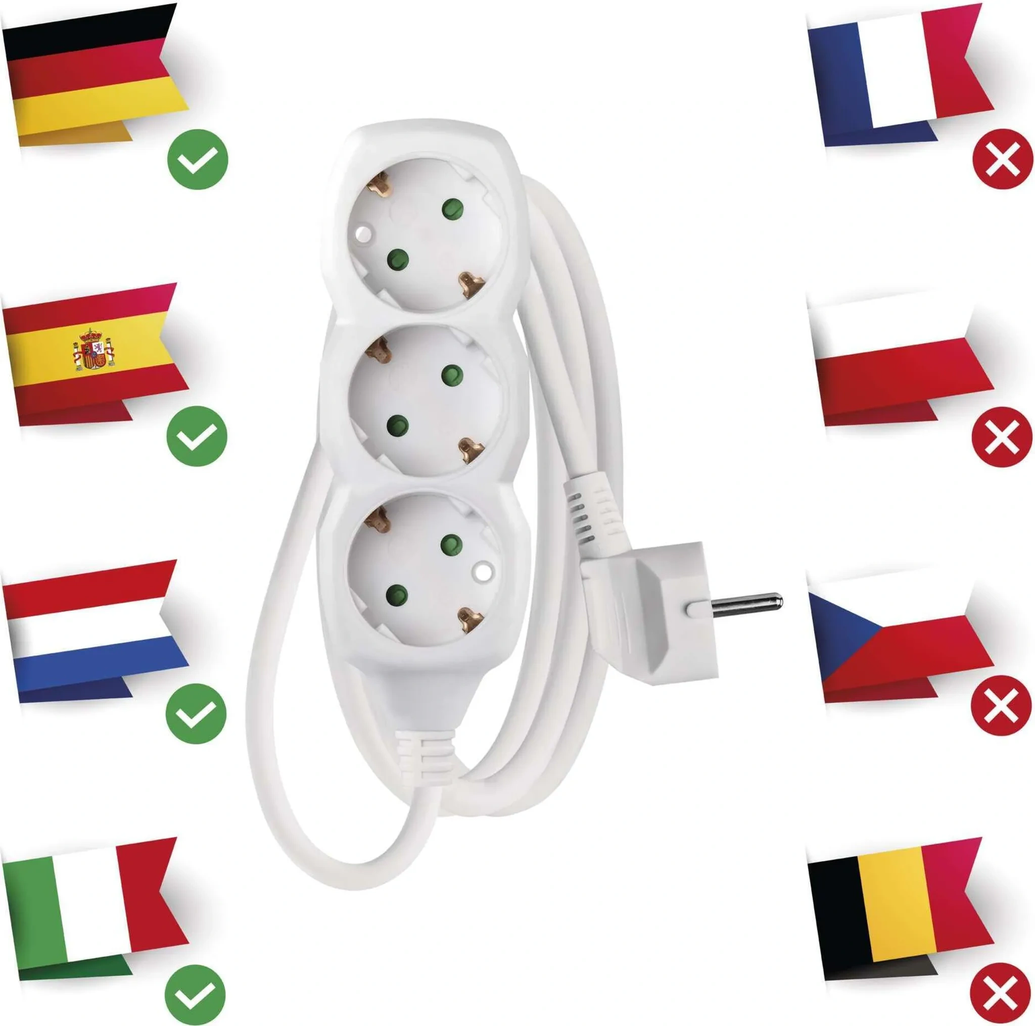 Der erhöhte Berührungsschutz sorgt für zusätzliche Sicherheit im Alltag, während die 1,5 m Kabellänge eine flexible Platzierung ermöglicht – ideal zum Verlängern von Stromanschlüssen in Wohnräumen.