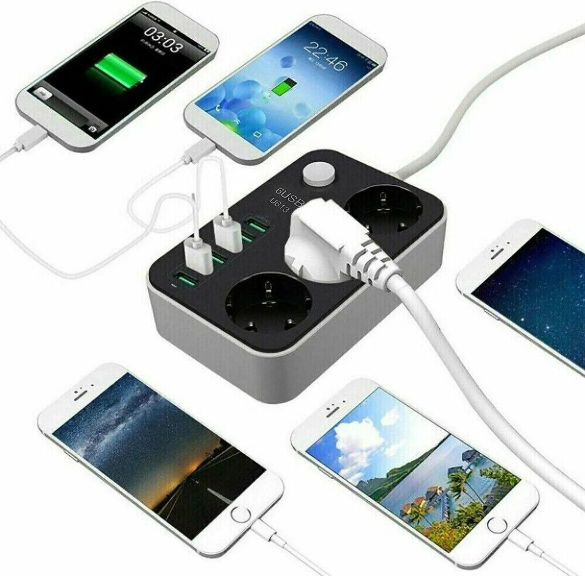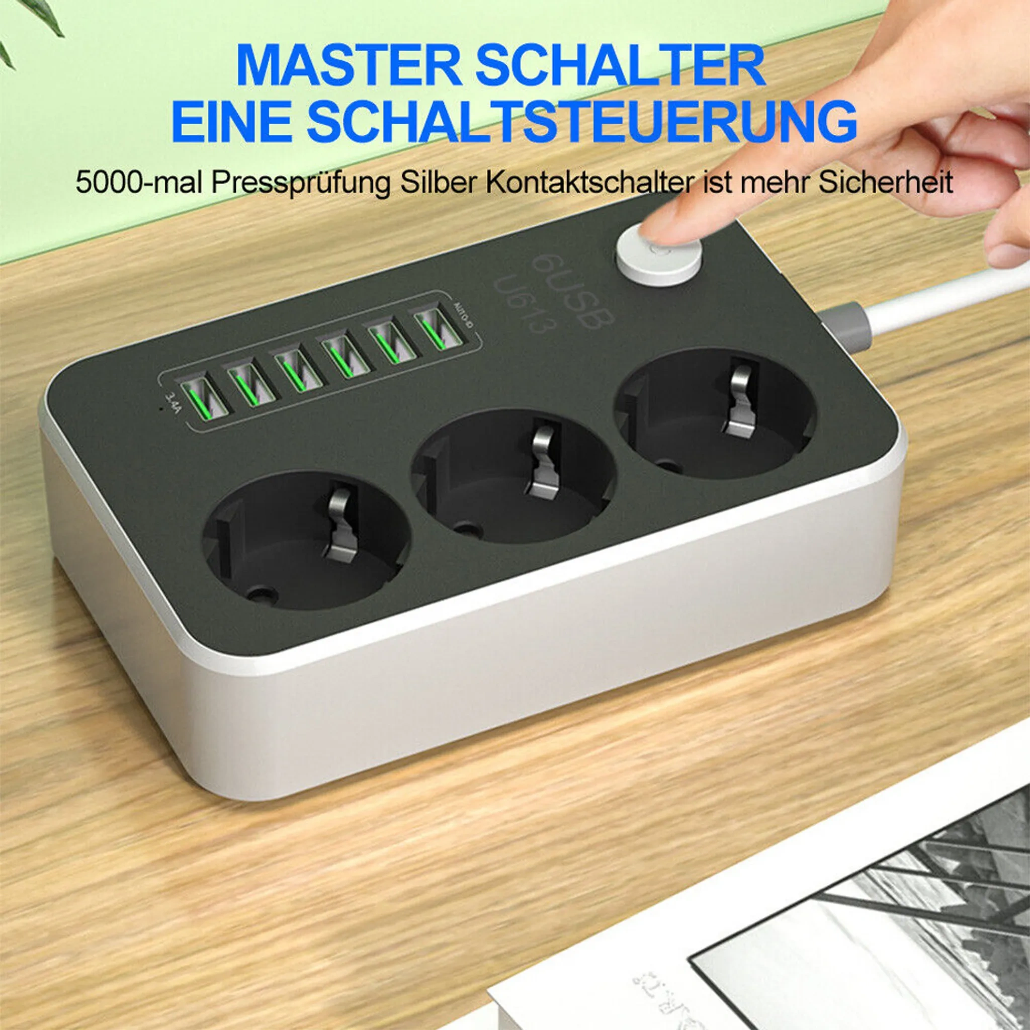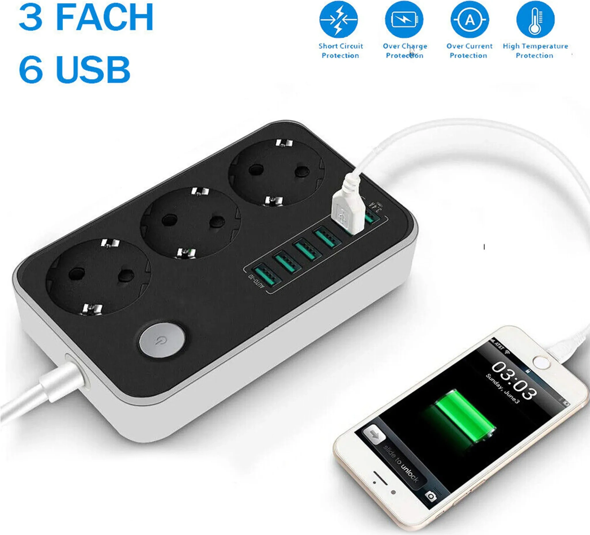 | Im Paket | 1× 3-fach Steckdosenleiste mit 6 USB-Ports · 2 m Kabel |