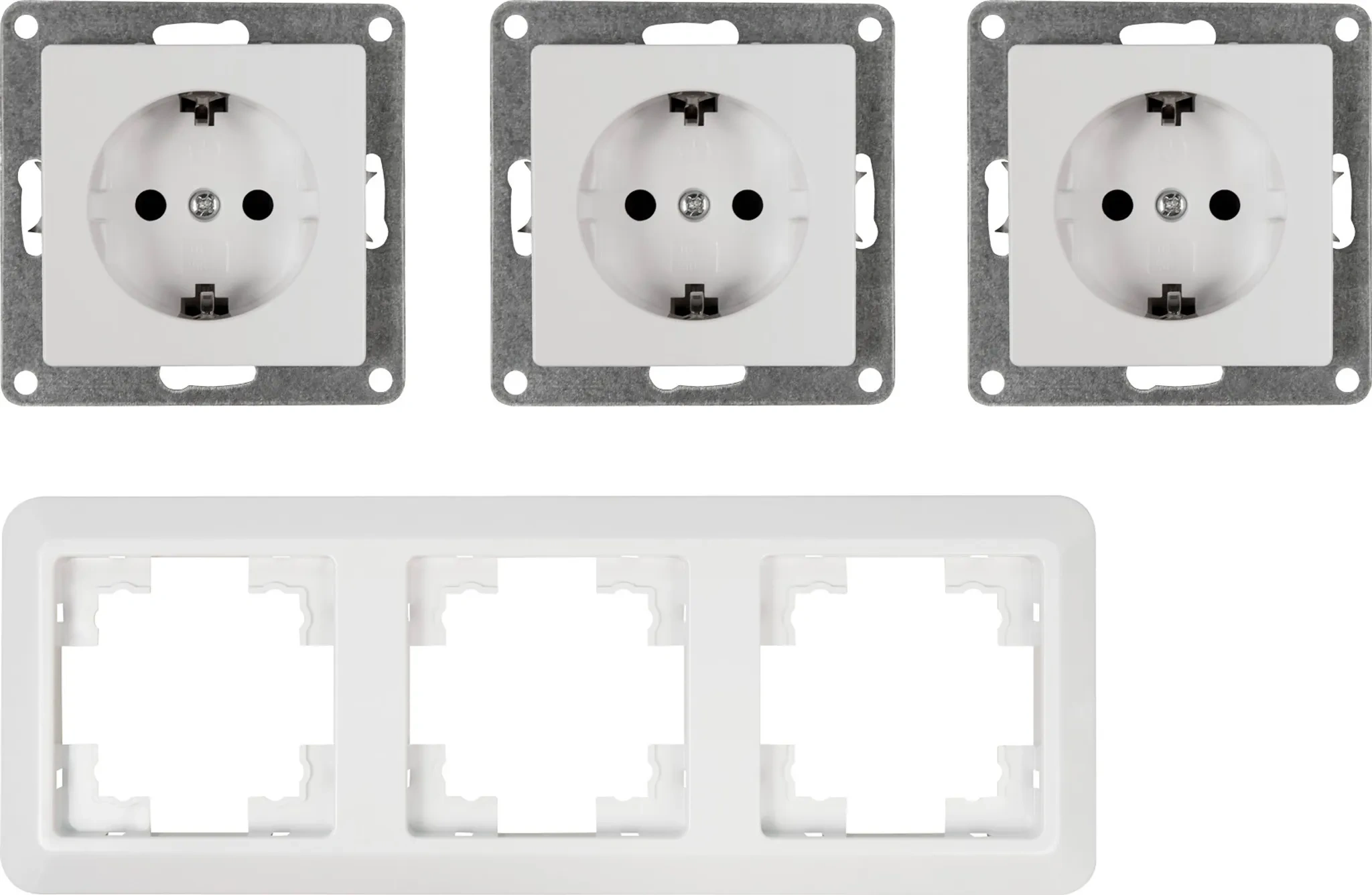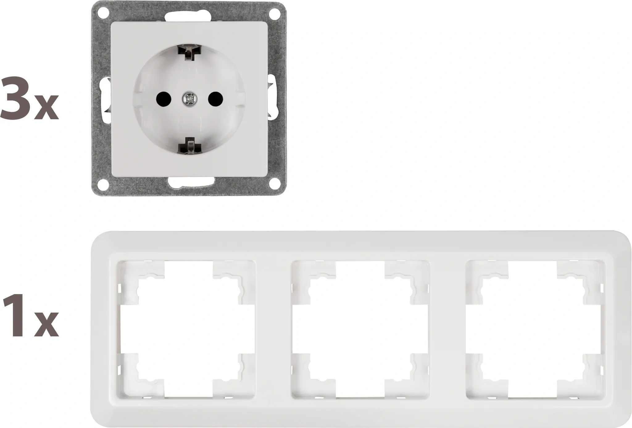 | Set-Inhalt | 3 × Schutzkontakt-Steckdose + 1 × 3-fach Rahmen |