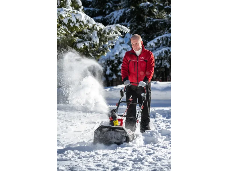 Mit 48 cm Arbeitsbreite und bis zu 20 cm Einzugshöhe lässt sich Neuschnee zuverlässig beseitigen. Der Schnee wird über den manuell 180° verstellbaren Auswurfkanal bis zu 6 m weit ausgeworfen. LED-Scheinwerfer, ergonomischer Führungsholm und das geringe Gewicht sorgen für komfortables Arbeiten – auch bei Dunkelheit.
