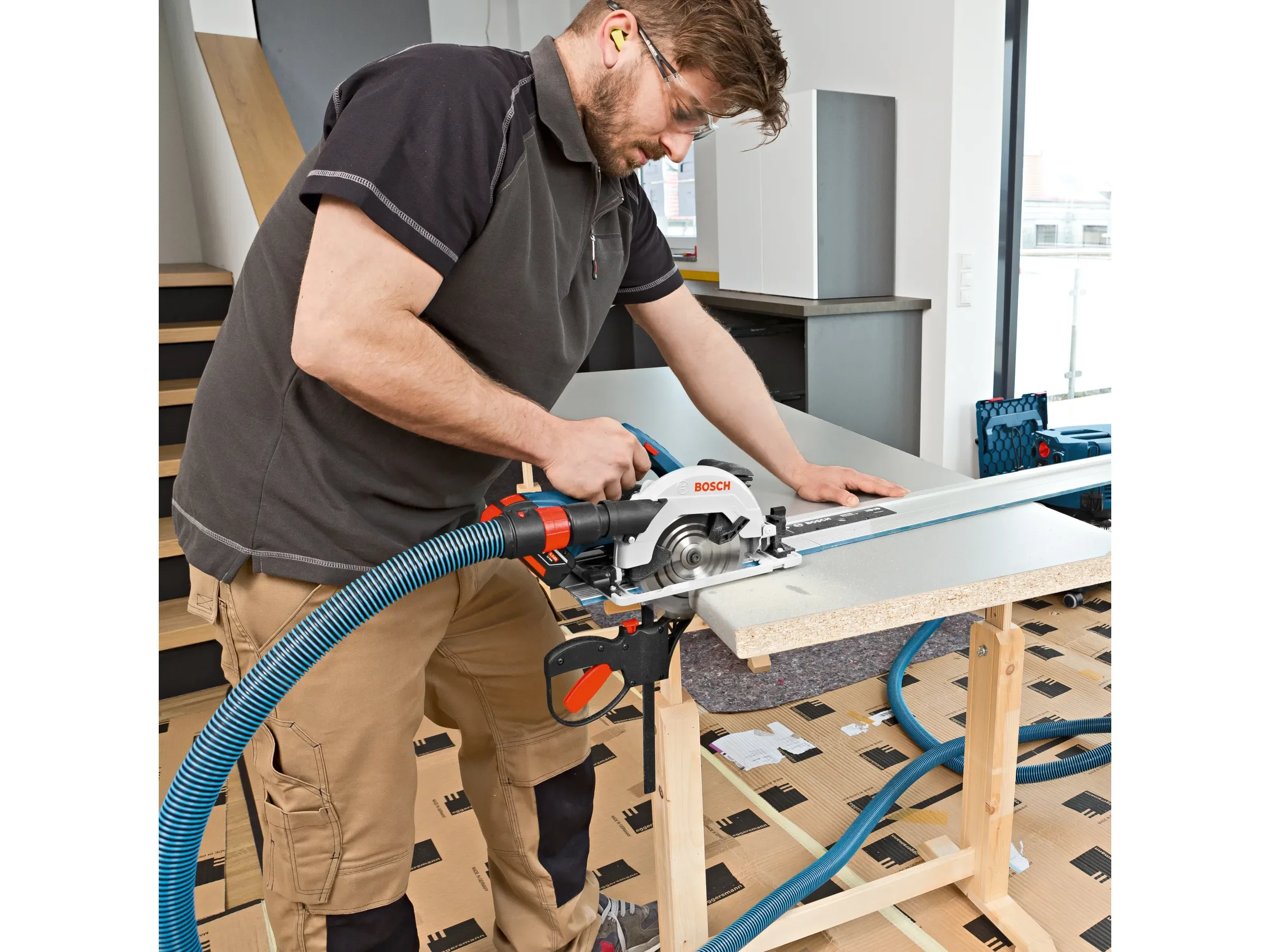Der leistungsstarke Motor sorgt für hohen Sägefortschritt, während Sanftanlauf und schnelle Motorbremse zusätzlichen Anwenderschutz bieten. Dank Spindelarretierung gelingt der Sägeblattwechsel einfach und schnell. Für exakte Ergebnisse ist das Gerät mit Führungsschienen kompatibel und verfügt über LED-Licht, Gebläse sowie einen Absaugstutzen für sauberes Arbeiten.