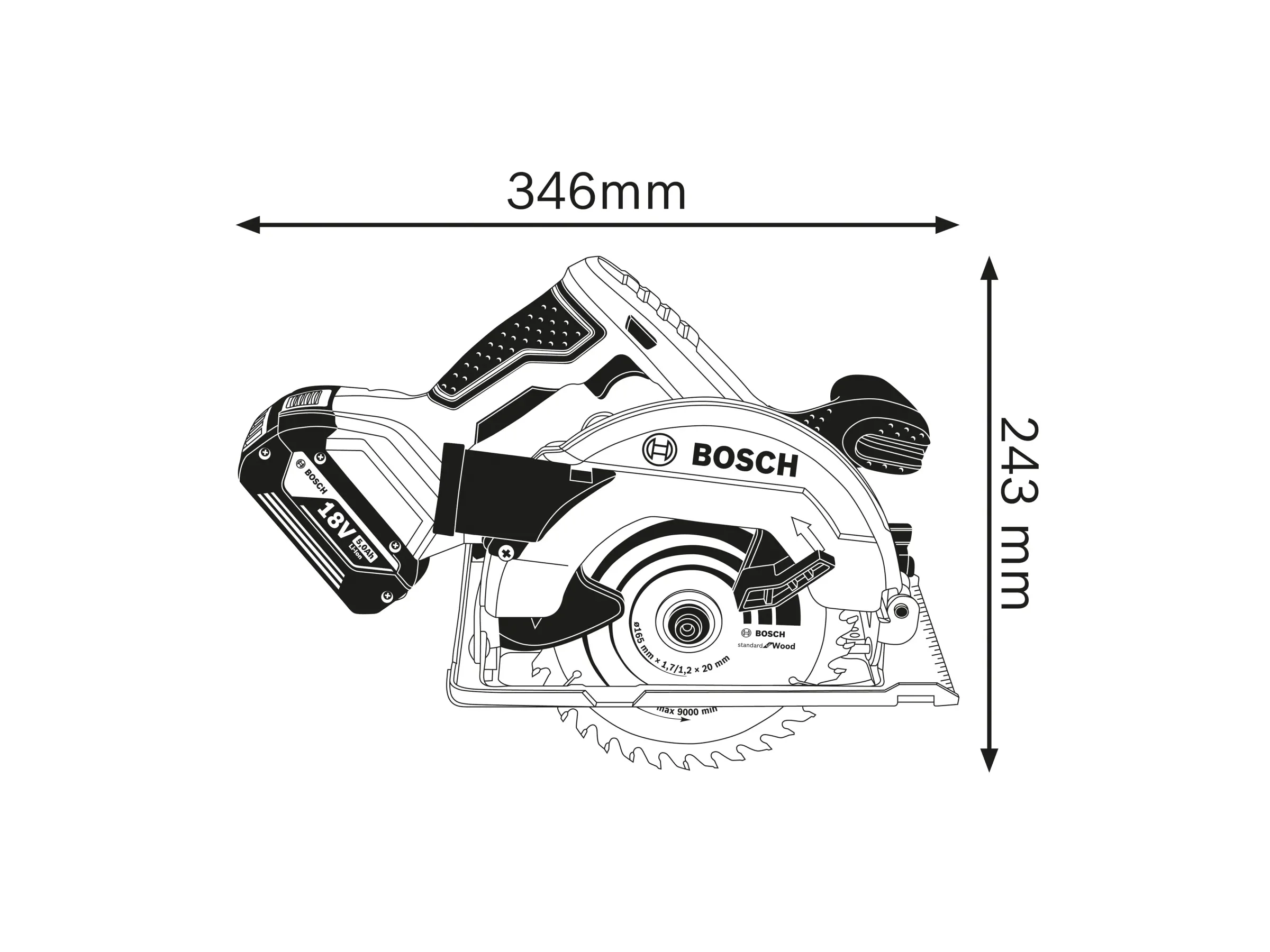 | Sägeblatt | Ø 165 mm × 20 mm |