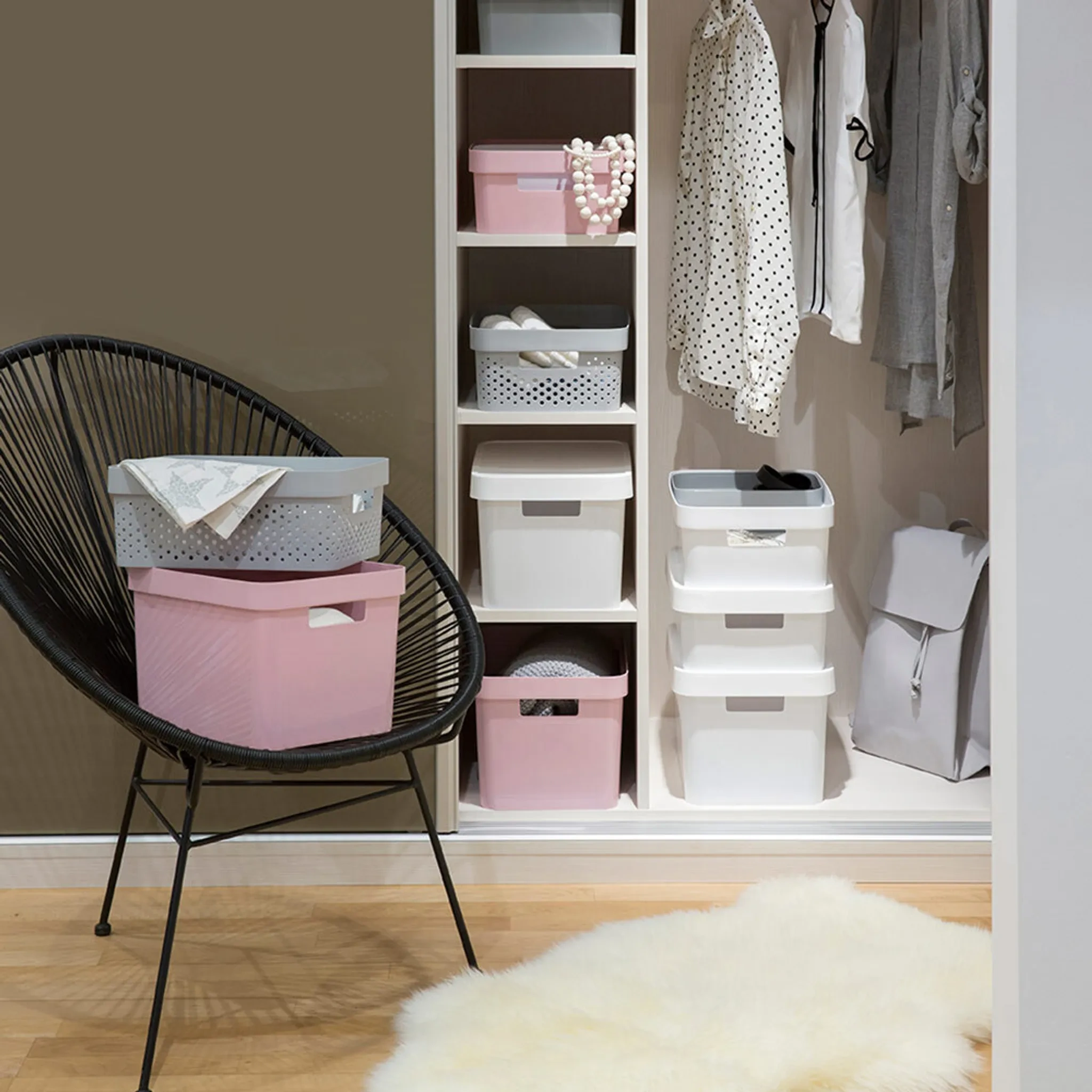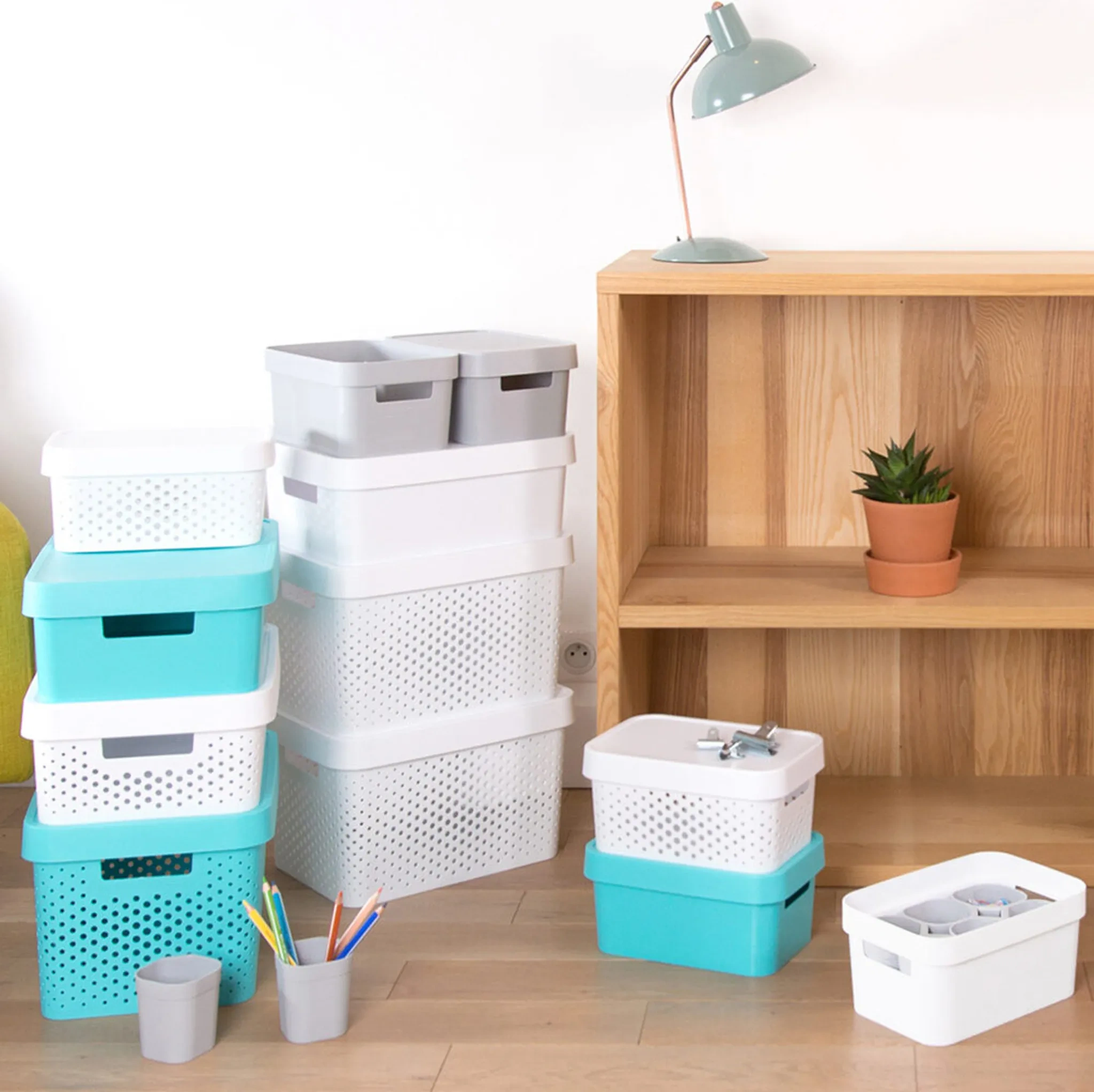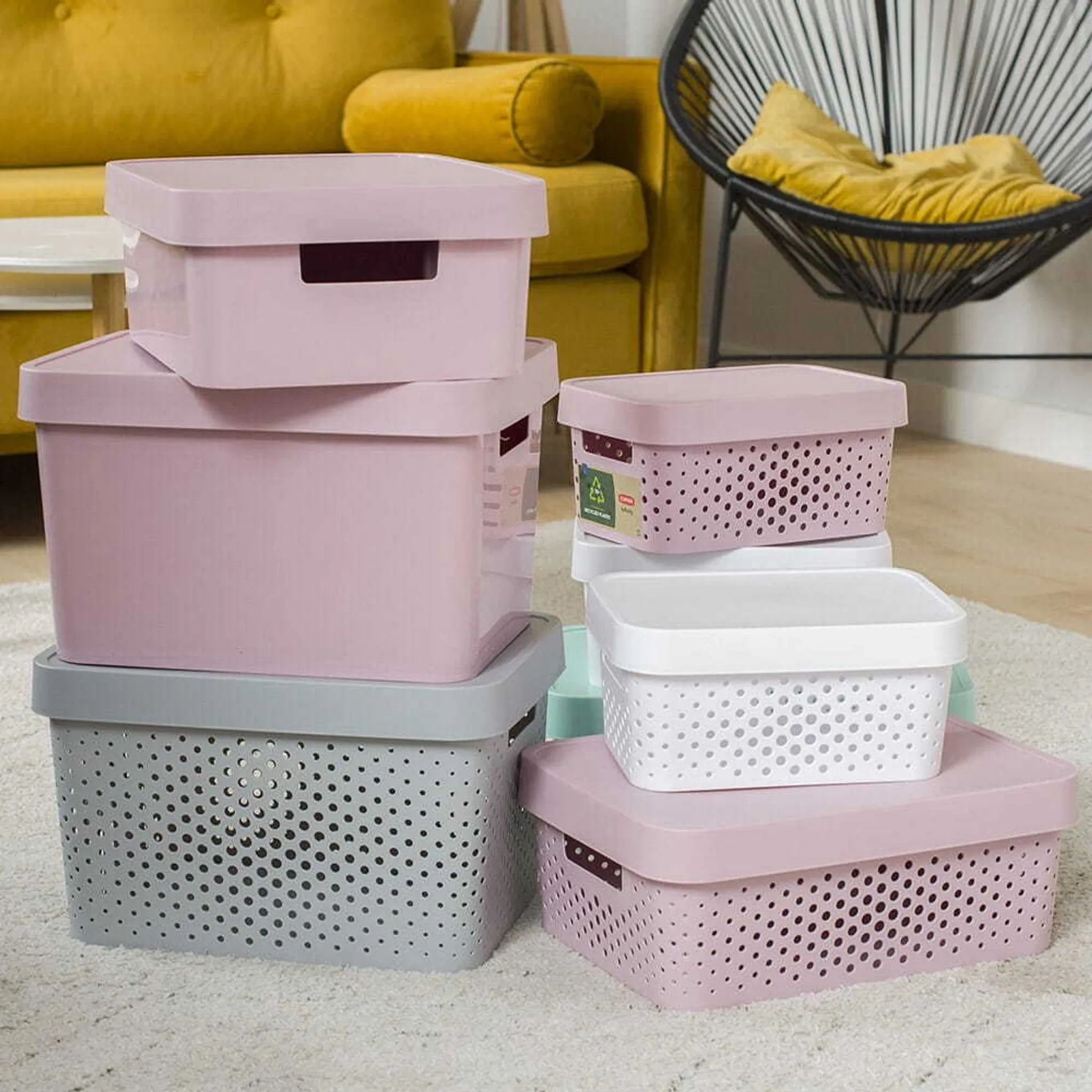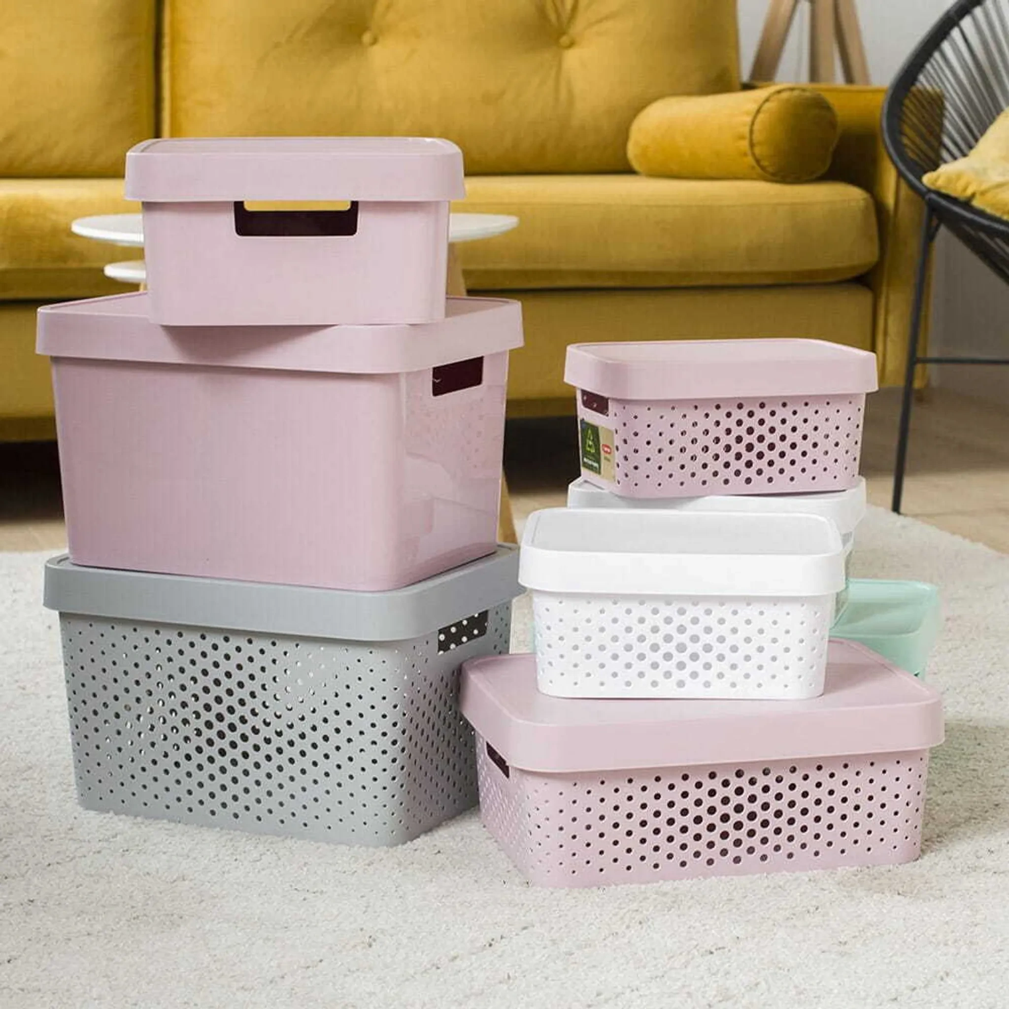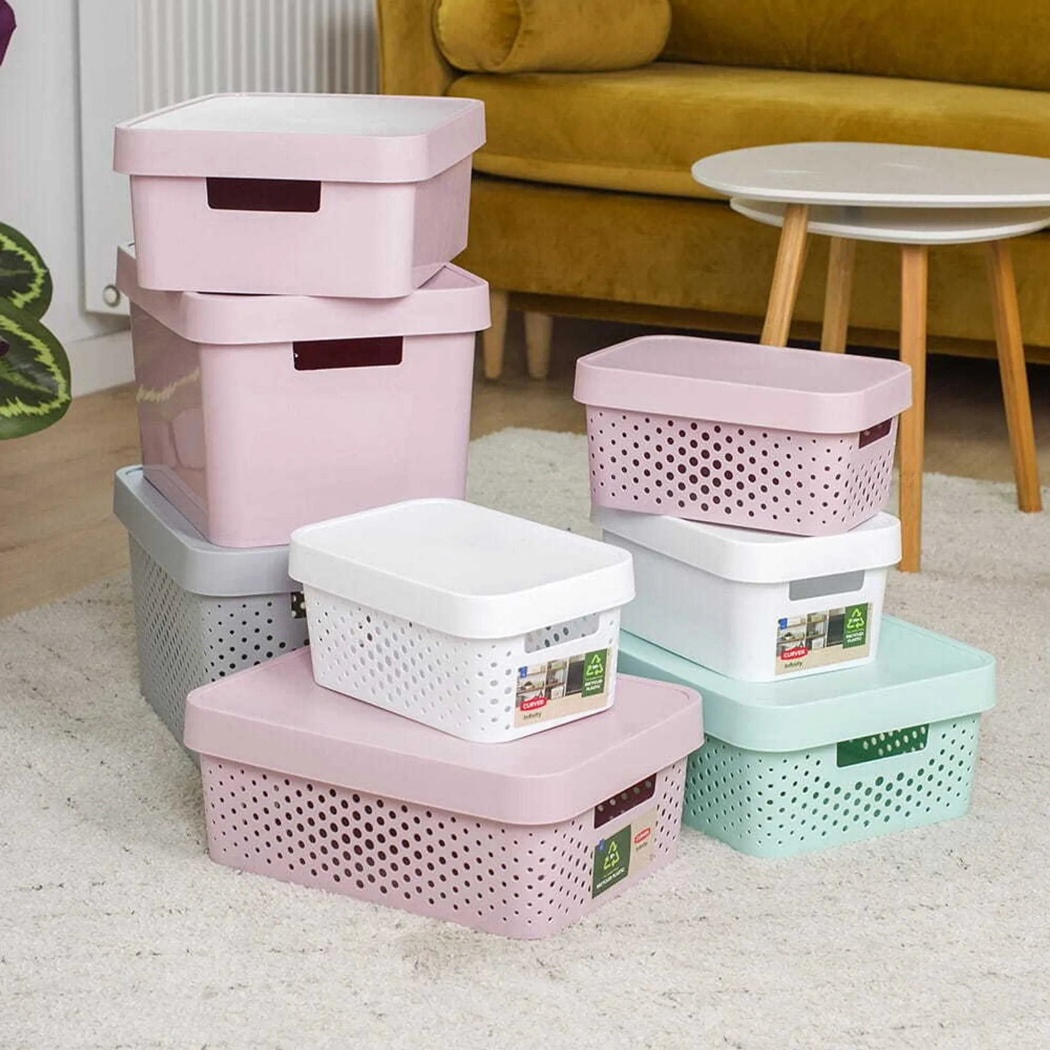 Stilvolle, dekorative Aufbewahrungsbox aus der beliebten Curver INFINITY Serie. Ideal zum Ordnen und Verstauen von kleinen Gegenständen im Haushalt – ob im Badezimmer, Wohnzimmer, Kinder- oder Arbeitszimmer. Die Box ist stapelbar, leicht zu reinigen und durch die integrierten Griffe komfortabel zu tragen.