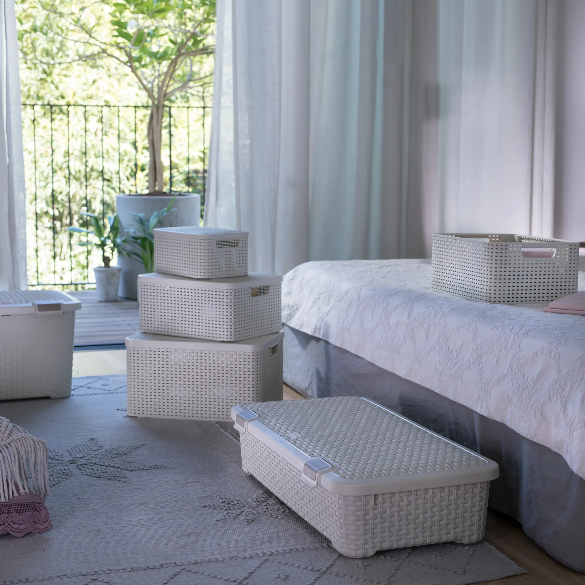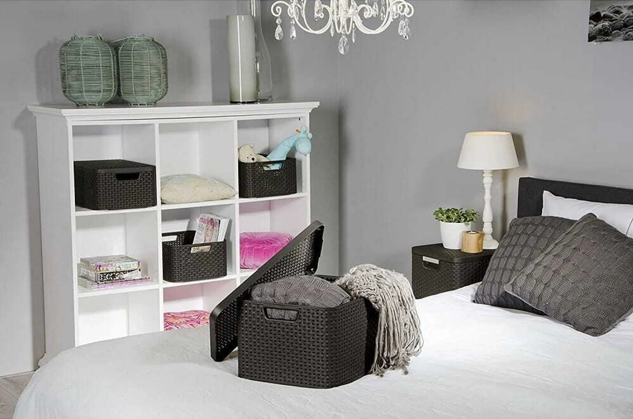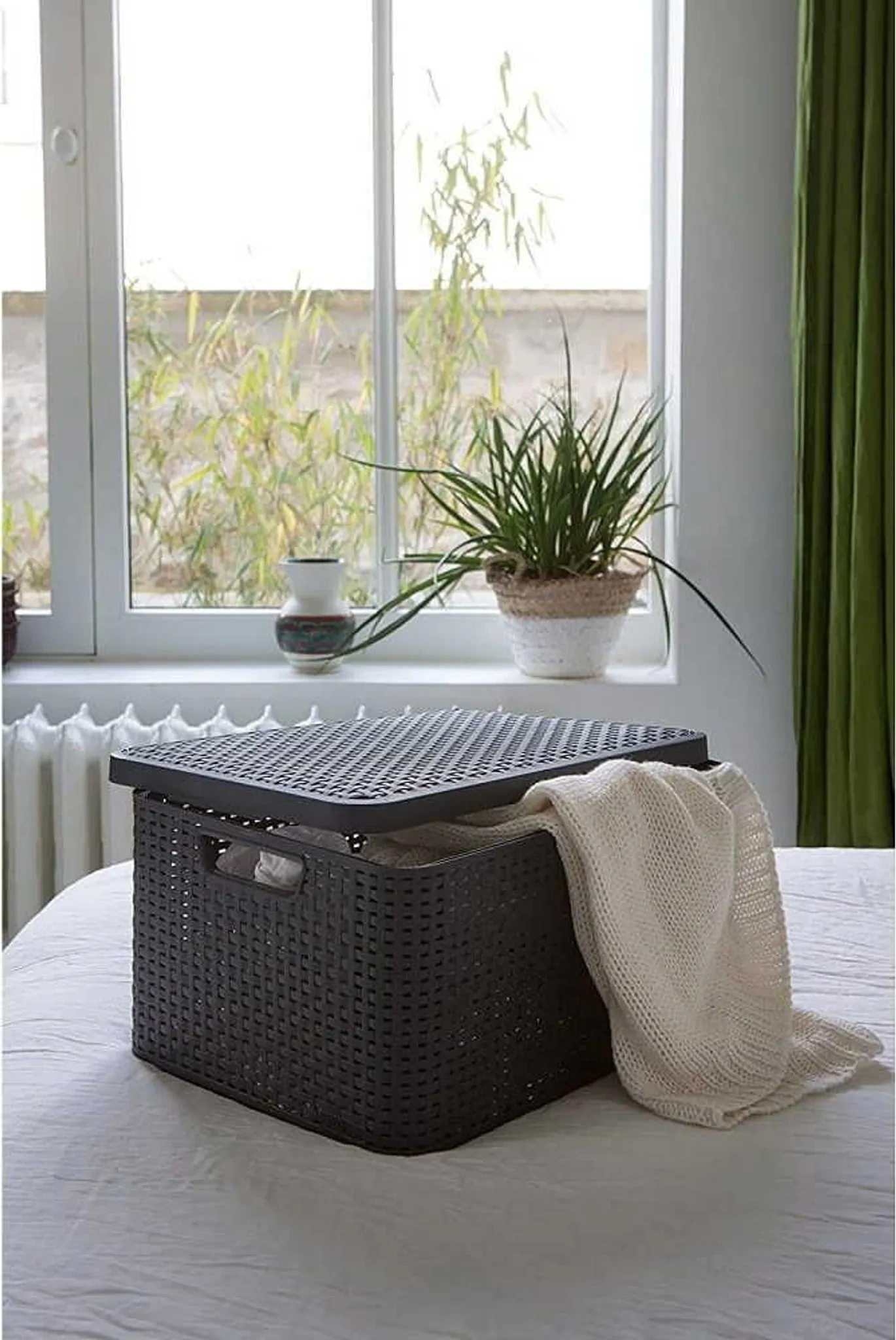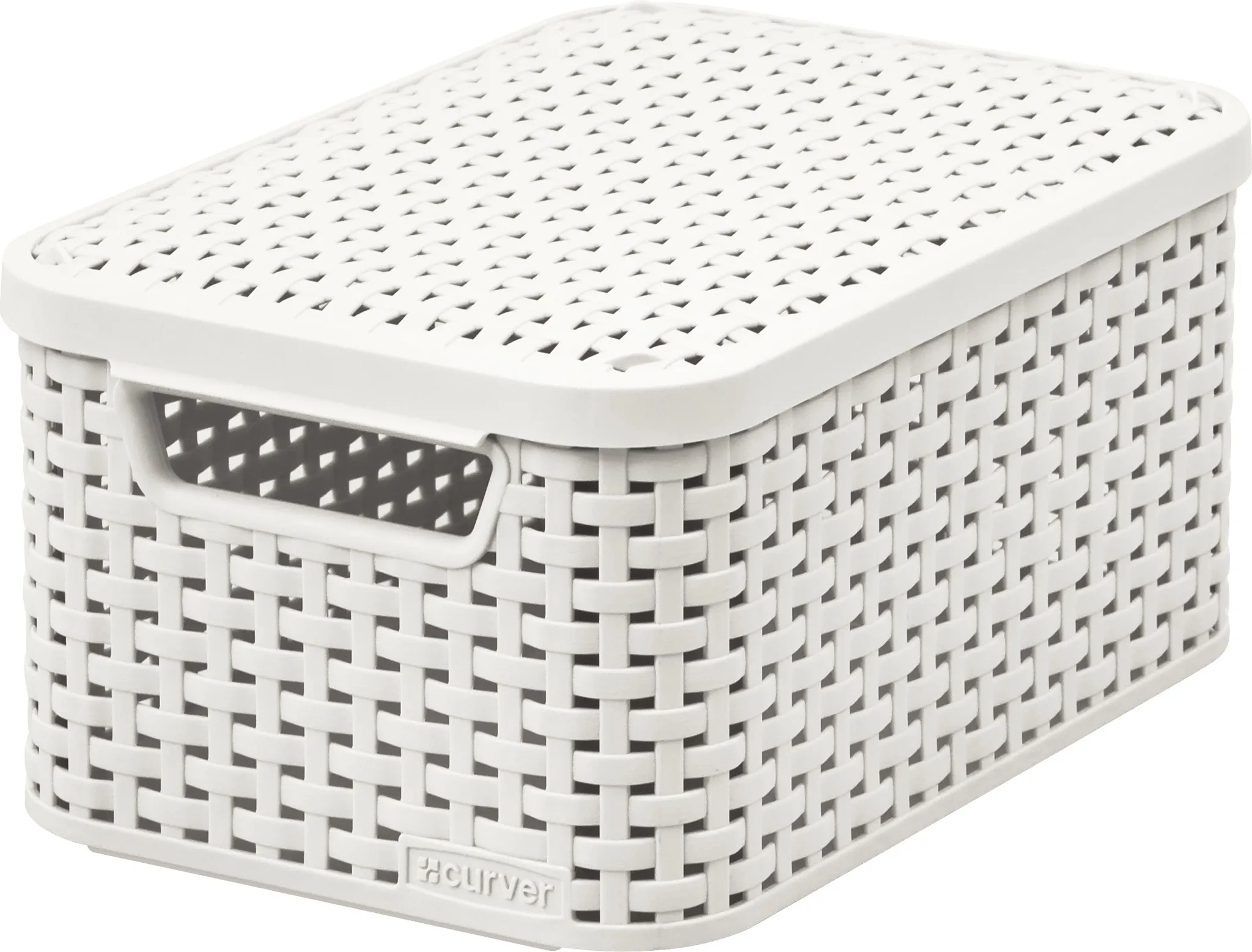 Die Curver Style S Aufbewahrungsbox kombiniert elegantes Design in Rattan-Optik mit praktischer Funktionalität. Dank des Deckels bleibt der Inhalt staubfrei und ordentlich geschützt. Durch die seitlichen Tragegriffe lässt sich die Box mühelos transportieren und stapeln. Perfekt zur Aufbewahrung von Kosmetik, Badartikeln, Accessoires, Bastelmaterial, Spielzeug und vielen weiteren Kleinartikeln.