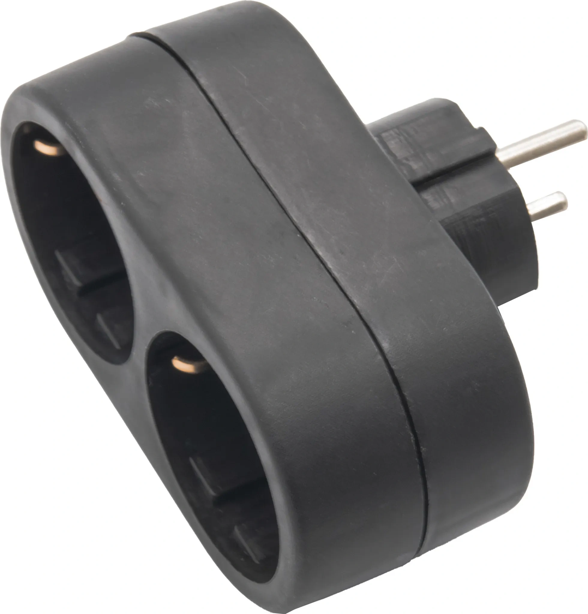 Doppelstecker Schuko – 2-fach Steckdosenadapter Vertikal – Schwarz