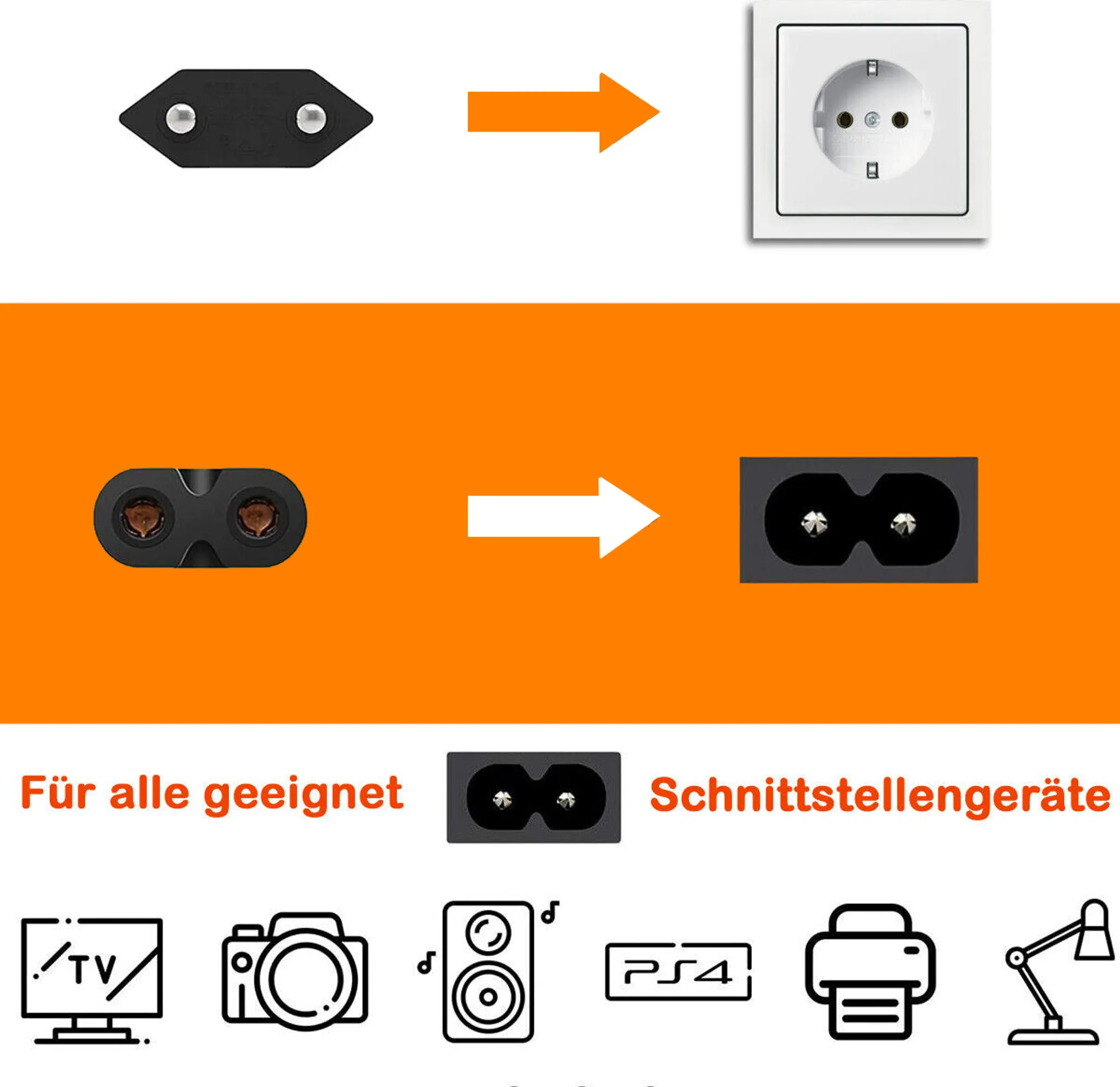 Eurostecker (CEE 7/16) • Gerätebuchse C7 • 0,75 mm² • Universell einsetzbar