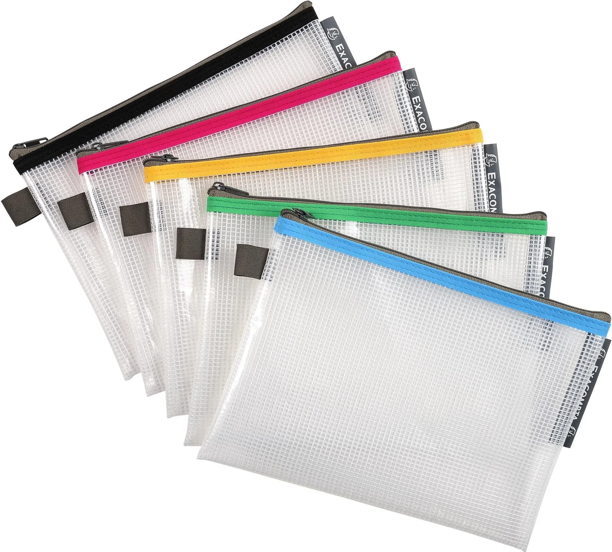 Exacompta Reißverschlusshülle A5 – transparent, sortierte Farben