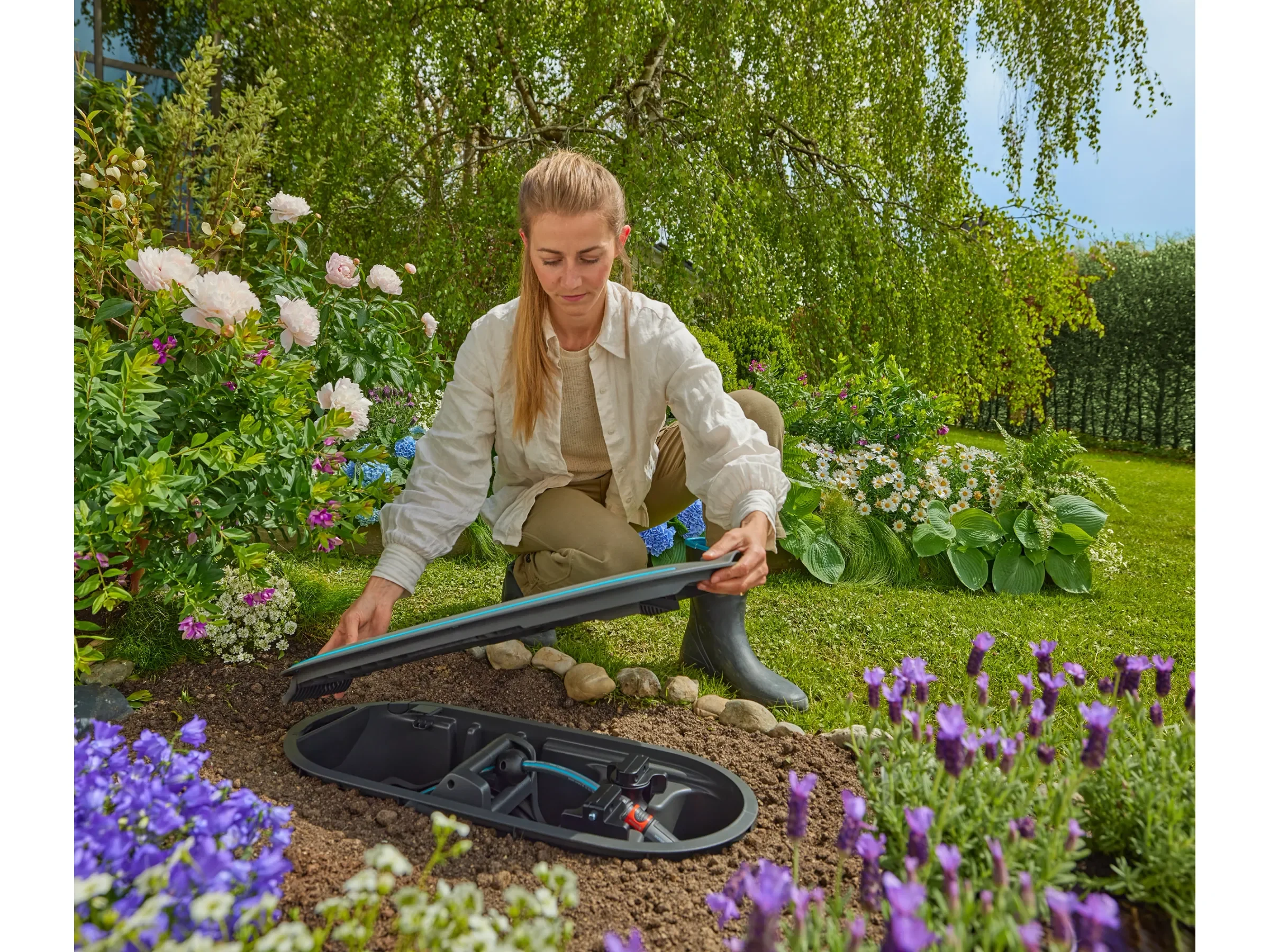 Die Gardena Undercover Schlauchbox RollUp M bietet eine unauffällige und praktische Lösung zur Aufbewahrung des Gartenschlauchs. Versteckt im Untergrund, bleibt der Garten übersichtlich und ästhetisch ansprechend, während der Schlauch jederzeit griffbereit ist.
