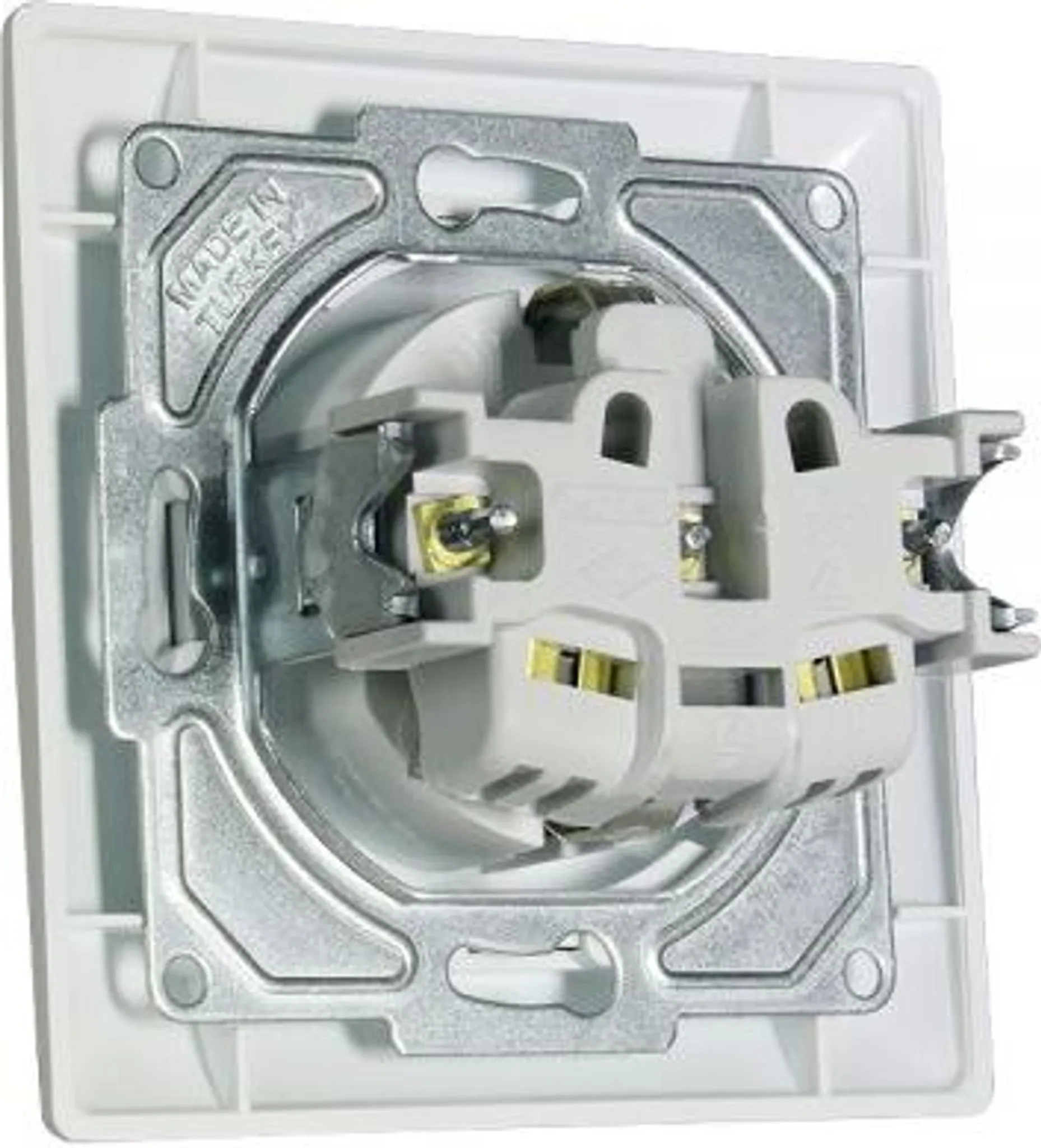 Die Gunsan Visage Steckdose verbindet modernes Design mit praktischer Handhabung. Dank des integrierten Steckklemmen-Systems erfolgt der Kabelanschluss schnell und ohne Schrauben – ideal für eine schnelle und sichere Installation. Das solide Kunststoffgehäuse in klassischem Weiß fügt sich harmonisch in Wohn- und Arbeitsbereiche ein.