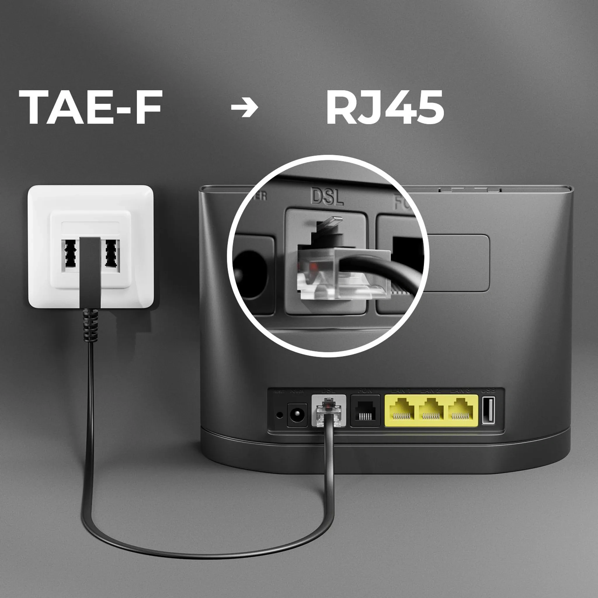 | Installation | Einfach TAE-F in Telefondose und RJ45 in Router einstecken |