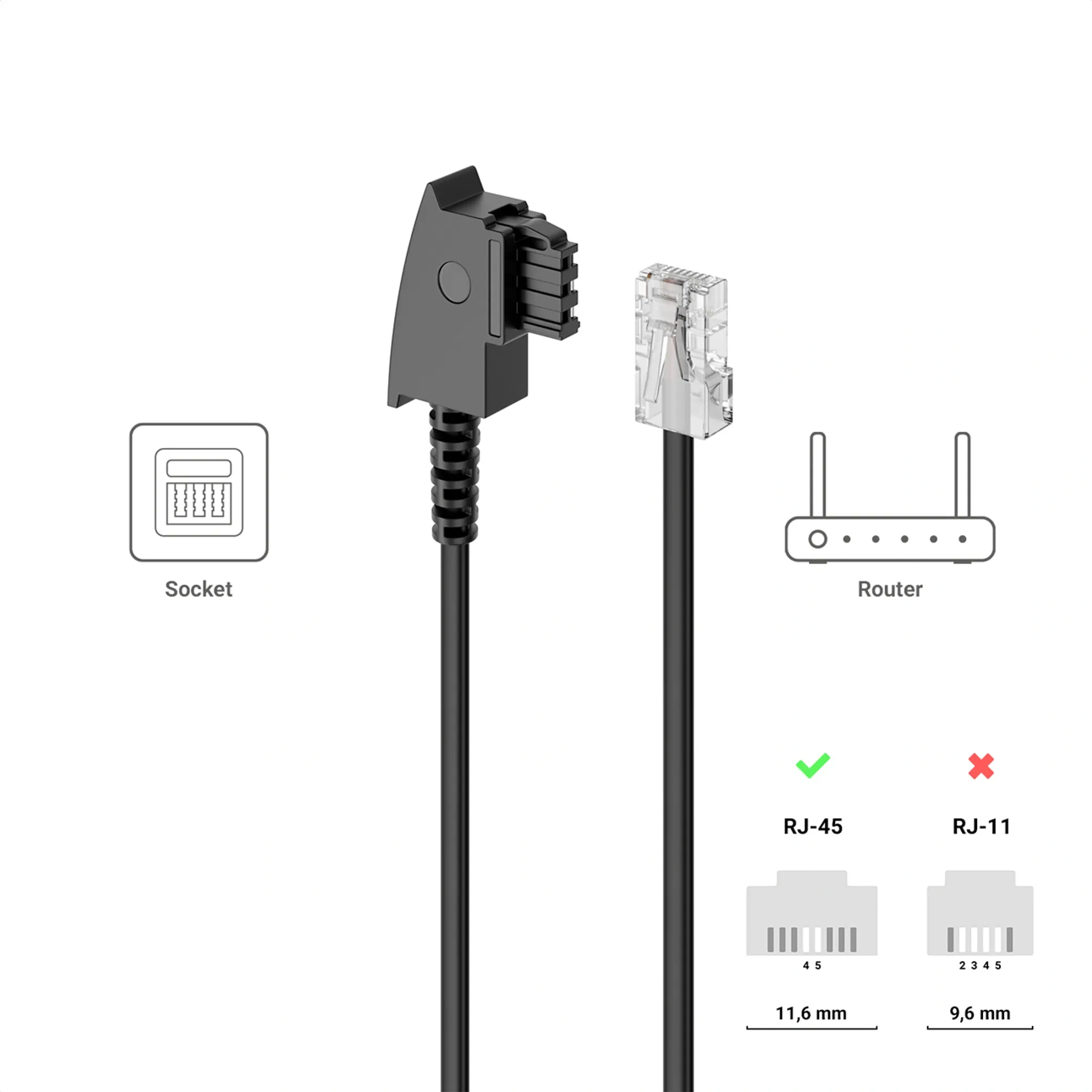 Highlights: Direkter Anschluss ohne Splitter • Stabil dank genormter Stecker • Ideal für Router-Installationen in Wohn- und Büroräumen.