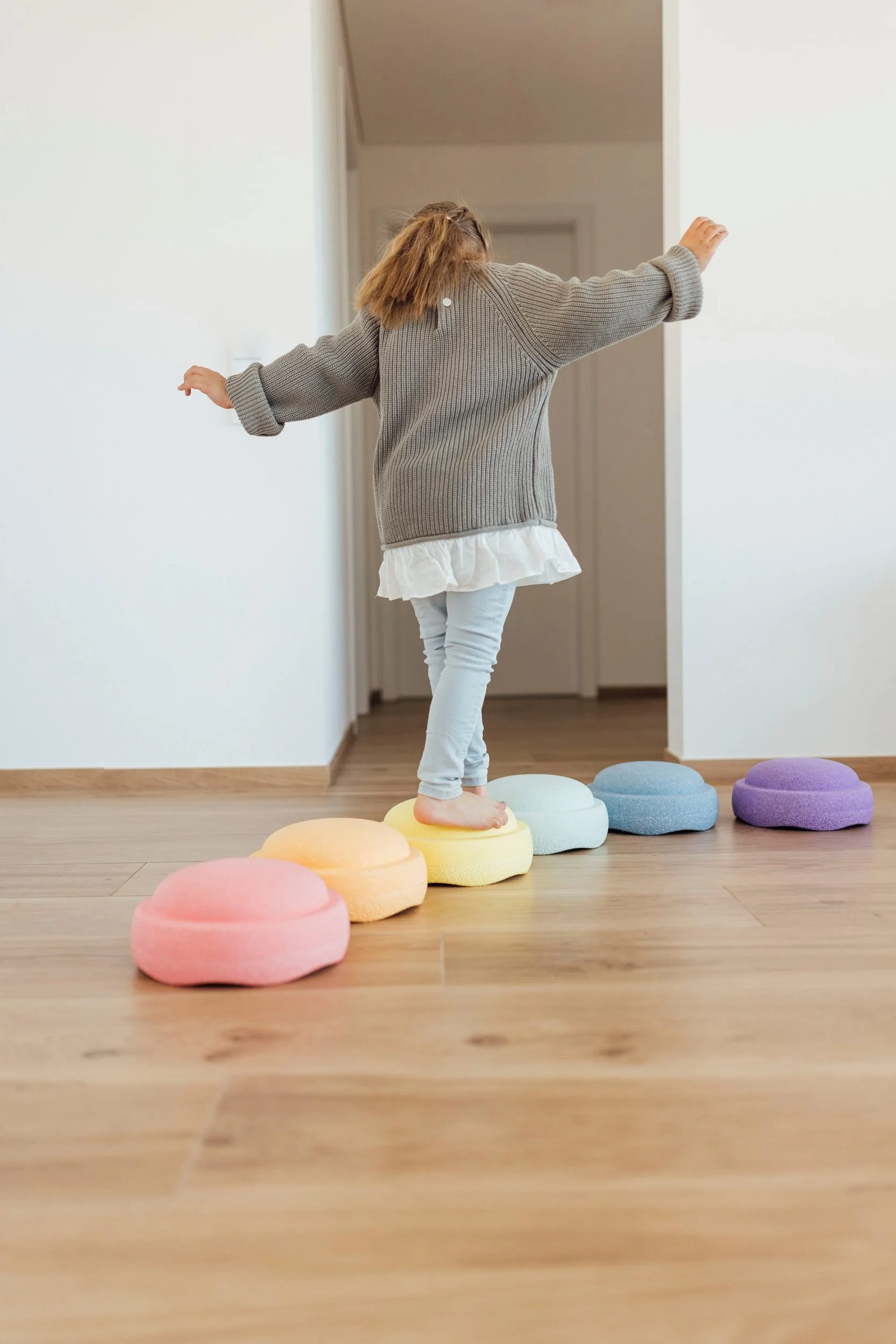 Die sanften Pastellfarben machen das Set zu einem dekorativen Blickfang im Wohn- oder Kinderzimmer. Gleichzeitig sind die Elemente robust, wasserfest und UV-beständig – ideal für den Einsatz im Innen- und Außenbereich. Durch die Kombinierbarkeit mit weiteren Stapelstein® Produkten entstehen immer neue Bewegungslandschaften.
