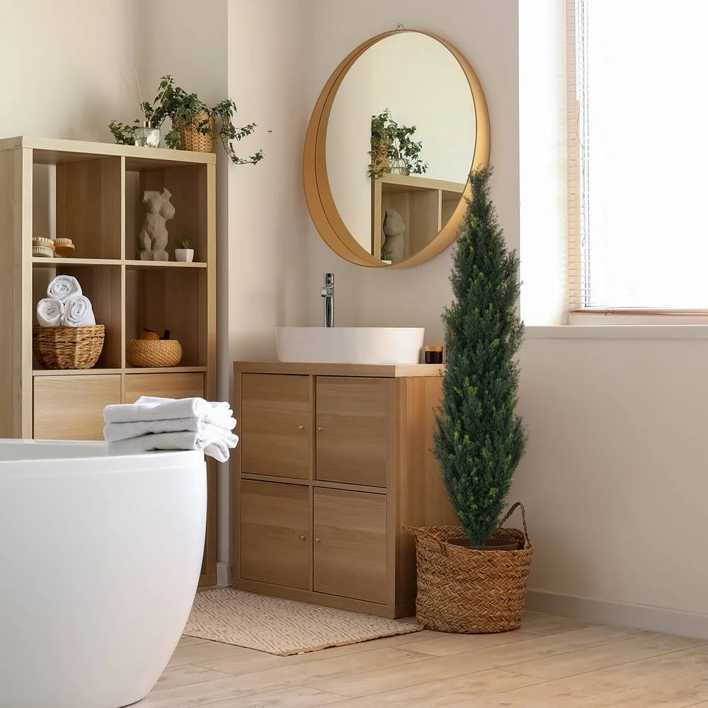 Diese hochwertige Kunstpflanze in Zedern-Optik überzeugt durch ihre realistische Nachbildung und sorgt ganzjährig für ein frisches, natürliches Ambiente – ganz ohne Pflegeaufwand. Der detailreiche Blattaufbau und der Materialmix aus Kunststoff und Textilien verleihen der Pflanze ein täuschend echtes Erscheinungsbild.
