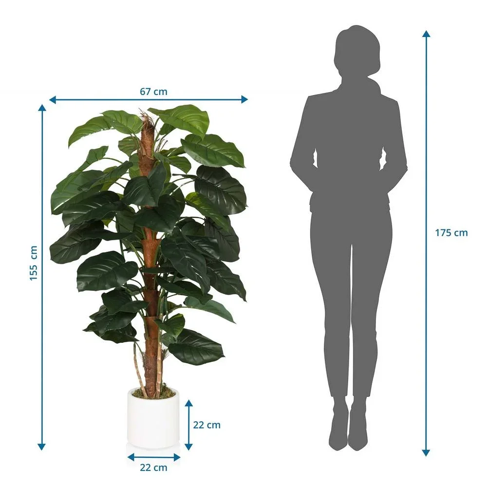 Ideal für Wohnbereiche, Büros, Empfangszonen oder Gastronomie. Kein Gießen, kein Umtopfen und keine besondere Beleuchtung notwendig – die Pflanze bleibt dauerhaft grün und widerstandsfähig. Nach dem Auspacken lassen sich Blätter und Stiele individuell formen.