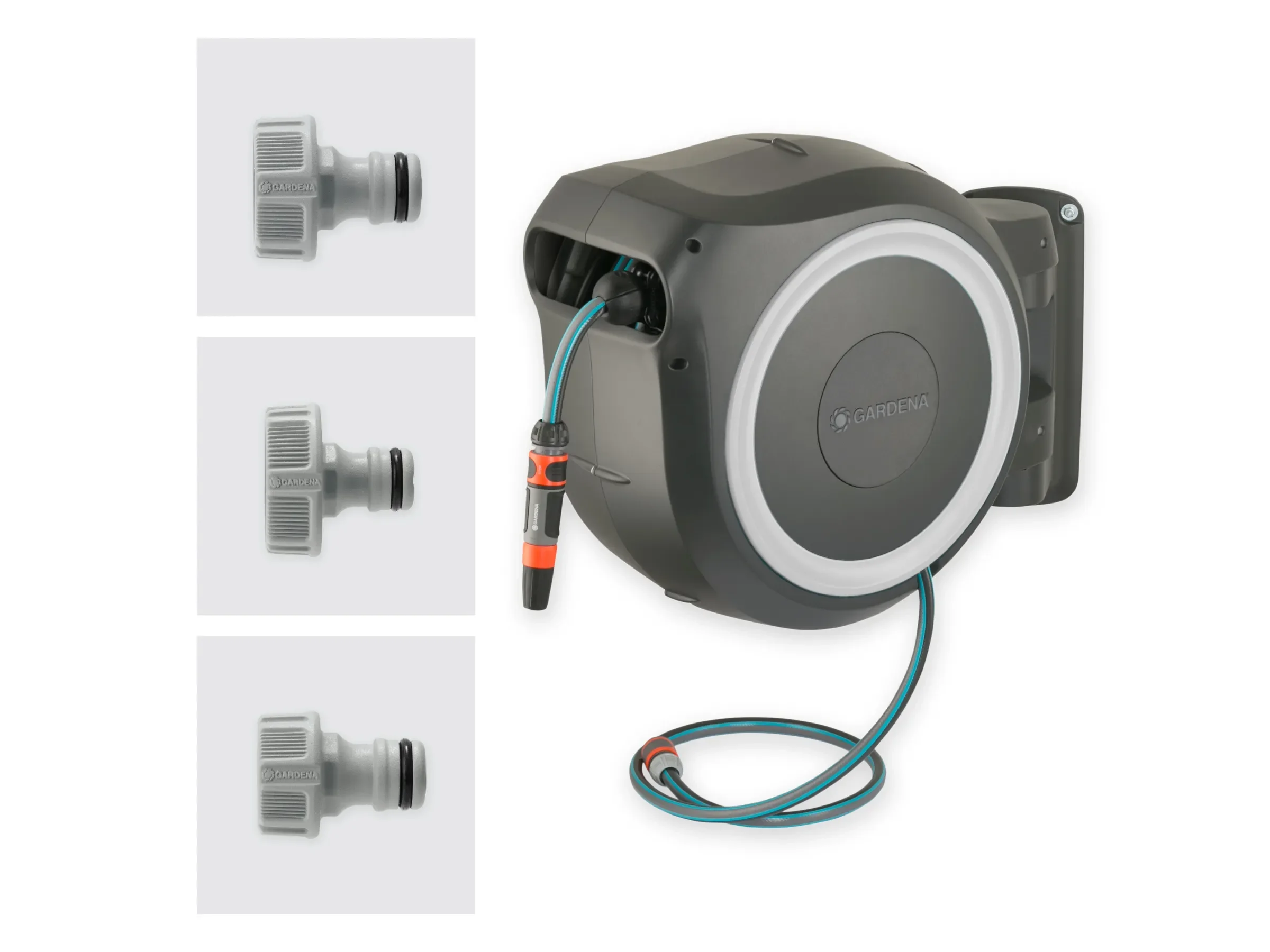 | Im Paket | 35 m Gartenschlauch, 1,5 m Anschlussschlauch, Wandhalterung, Systemteile, Spritze, Montagematerial, Diebstahlsicherung |