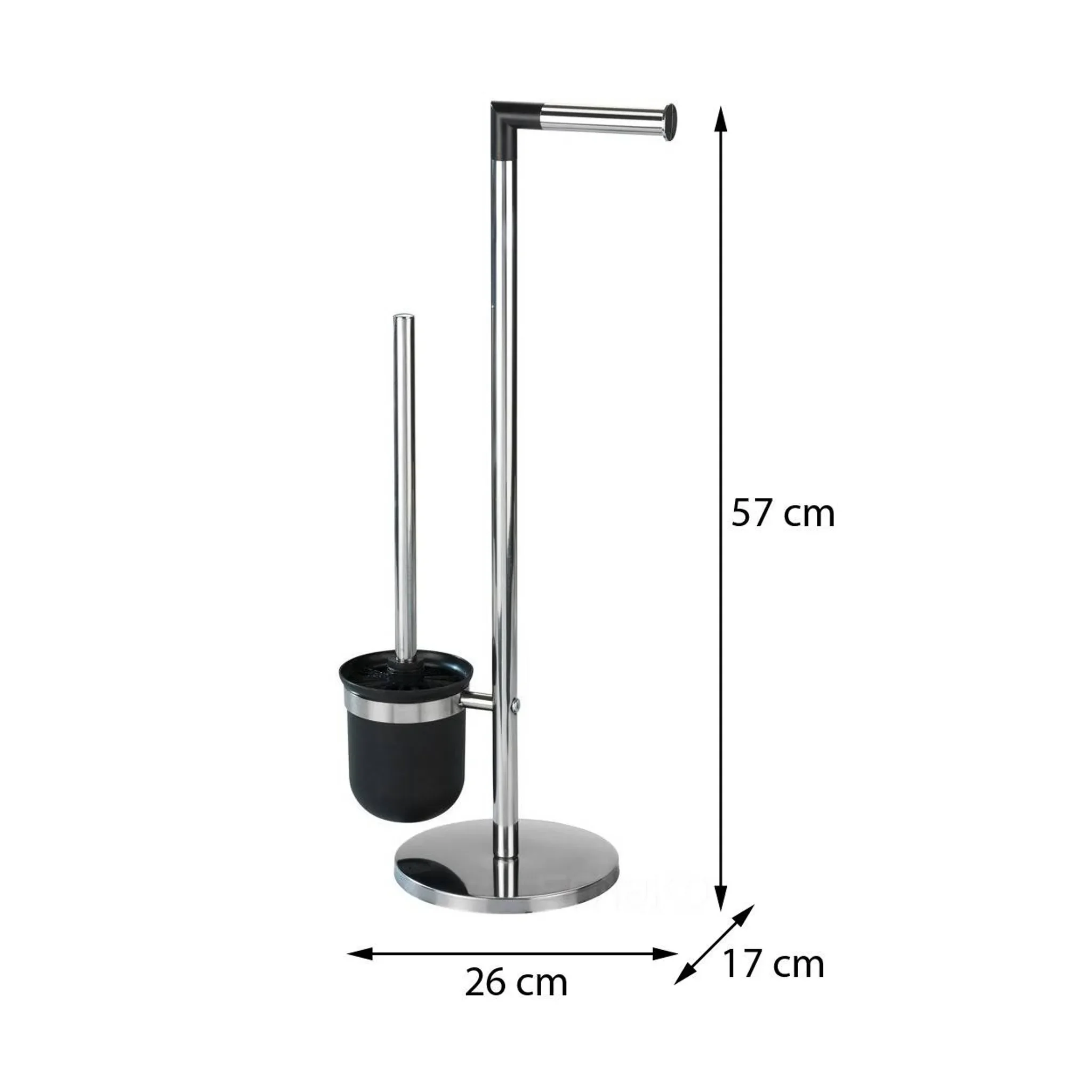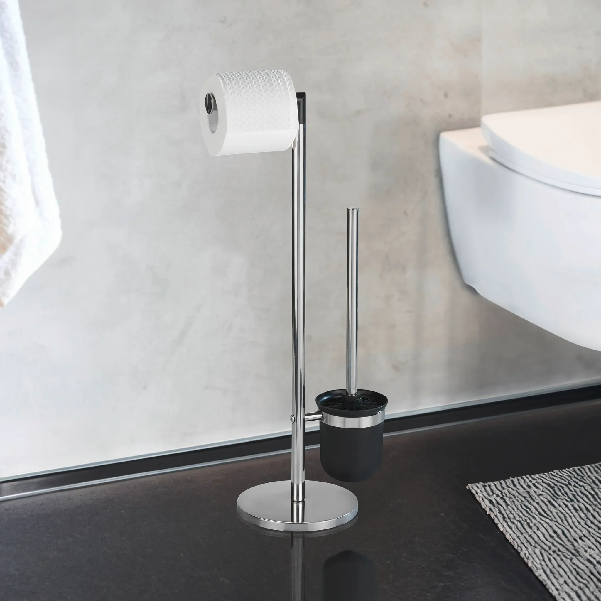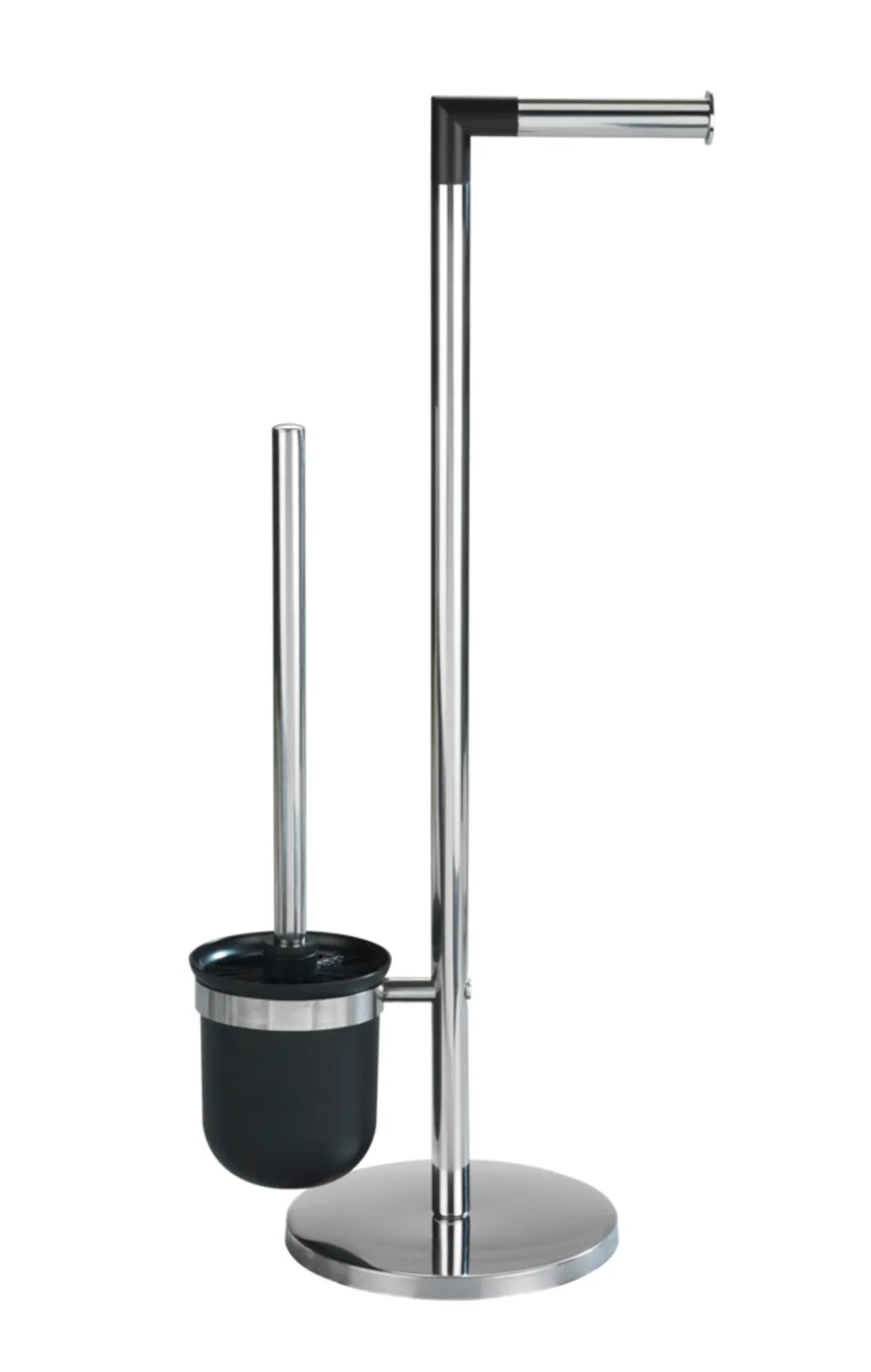 Toilettenpapierhalter & WC-Bürste – Edelstahl glänzend / Schwarz, freistehend