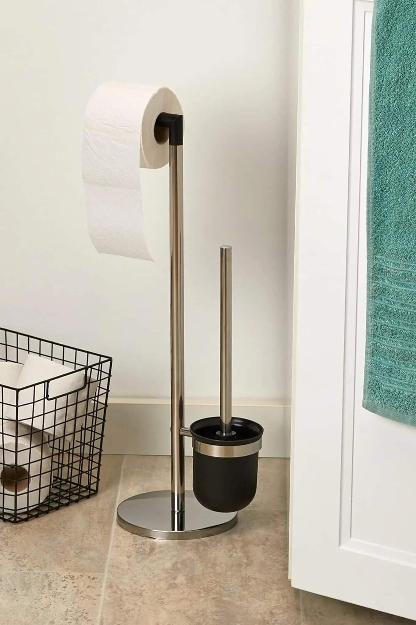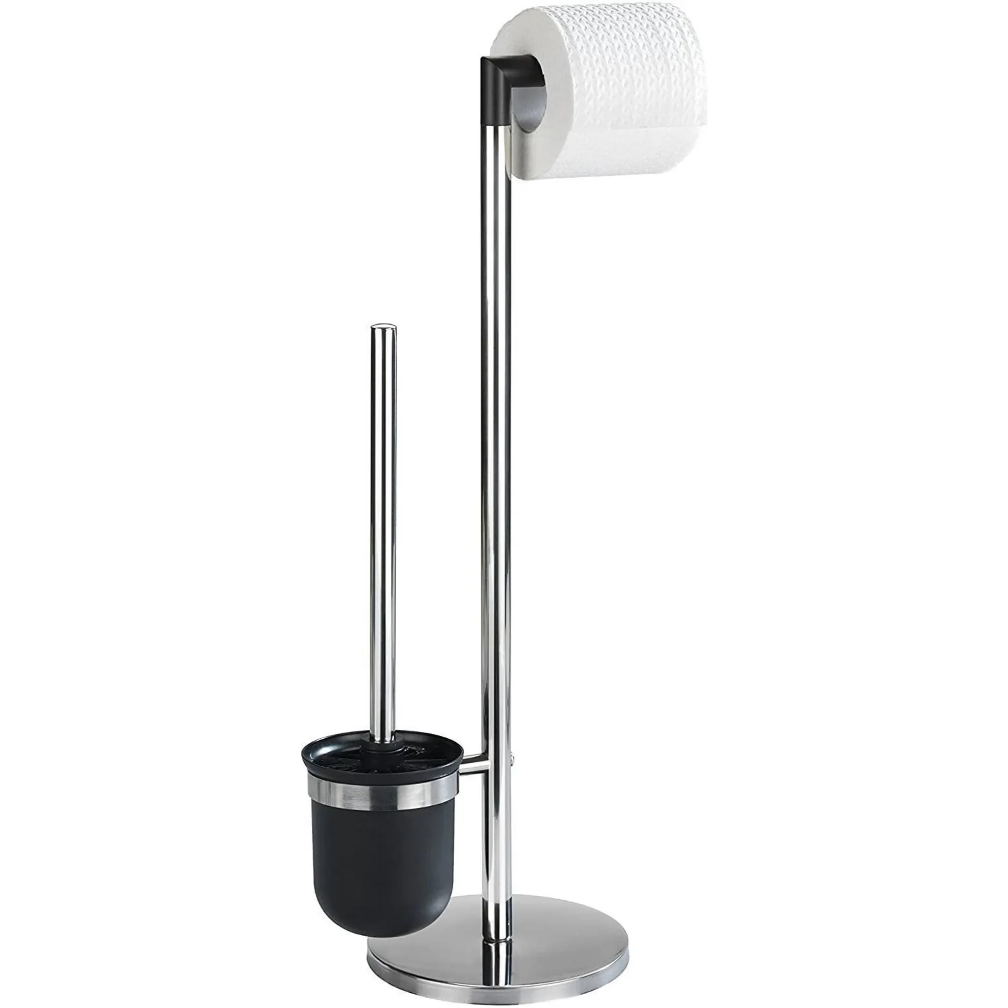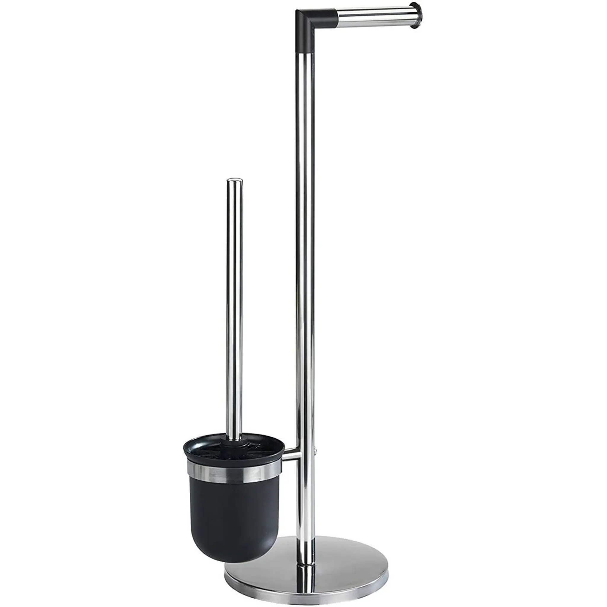 Toilettenpapierhalter & WC-Bürste – Edelstahl glänzend / Schwarz, freistehend