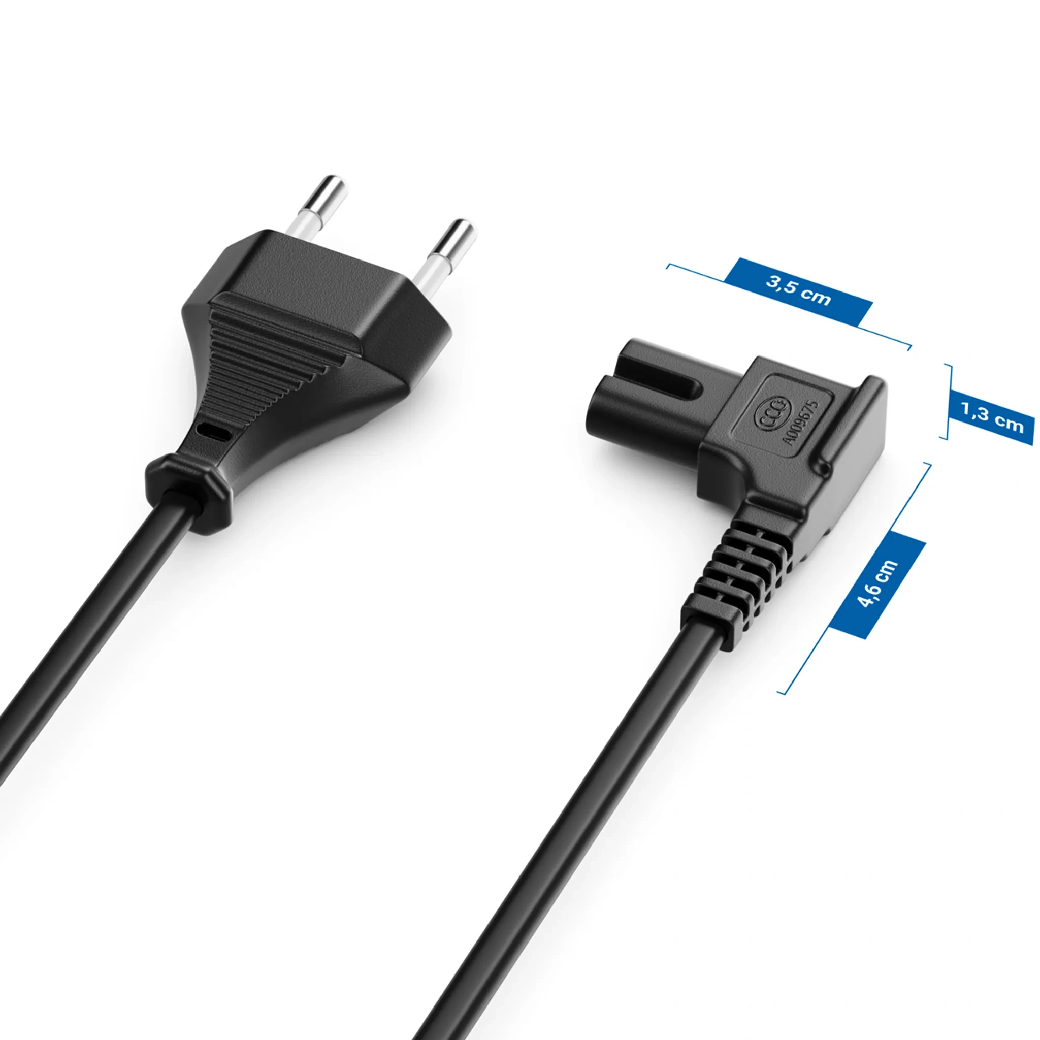 Produktinformationen "deleyCON Netzkabel 2 m – Typ C (Eurostecker) auf C7 Buchse, 90° gewinkelt"